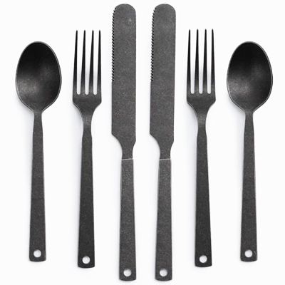 Minimalist, utilitarian, and modern. The Flatware Set brings something different to the table. Choose from Polished or Matte finishes for a one-of-a-kind look that plays beautifully against our enamelware.