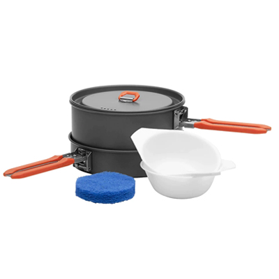 The cook pot (0.9L) with lid is excellent for pasta, soups, stews and preparing dehydrated meals. The lid features a heat resistant handle with drain holes for easy straining.