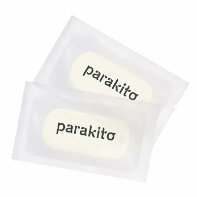 Open the protective bag and insert the refill under the netting of the Parakito accessory (held flat, with the refill facing away from the skin).