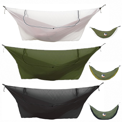 The TTM Convertible Bug Net 360º is compatible with all hammocks that lack spreader bars. It fits gathered-end hammocks up to 360cm long, thanks to its generous length. It’s available in white, black and army green.